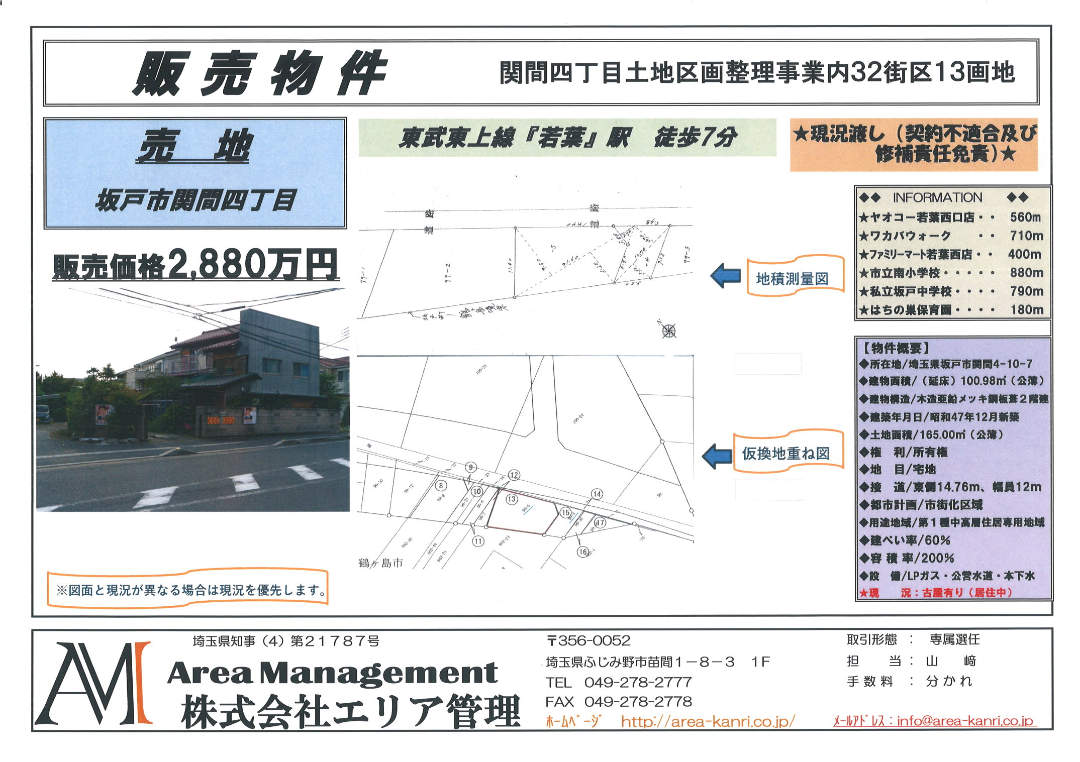 最寄駅 | 東武東上線「若葉」駅 徒歩7分 | 価格 | 2,880万円 |